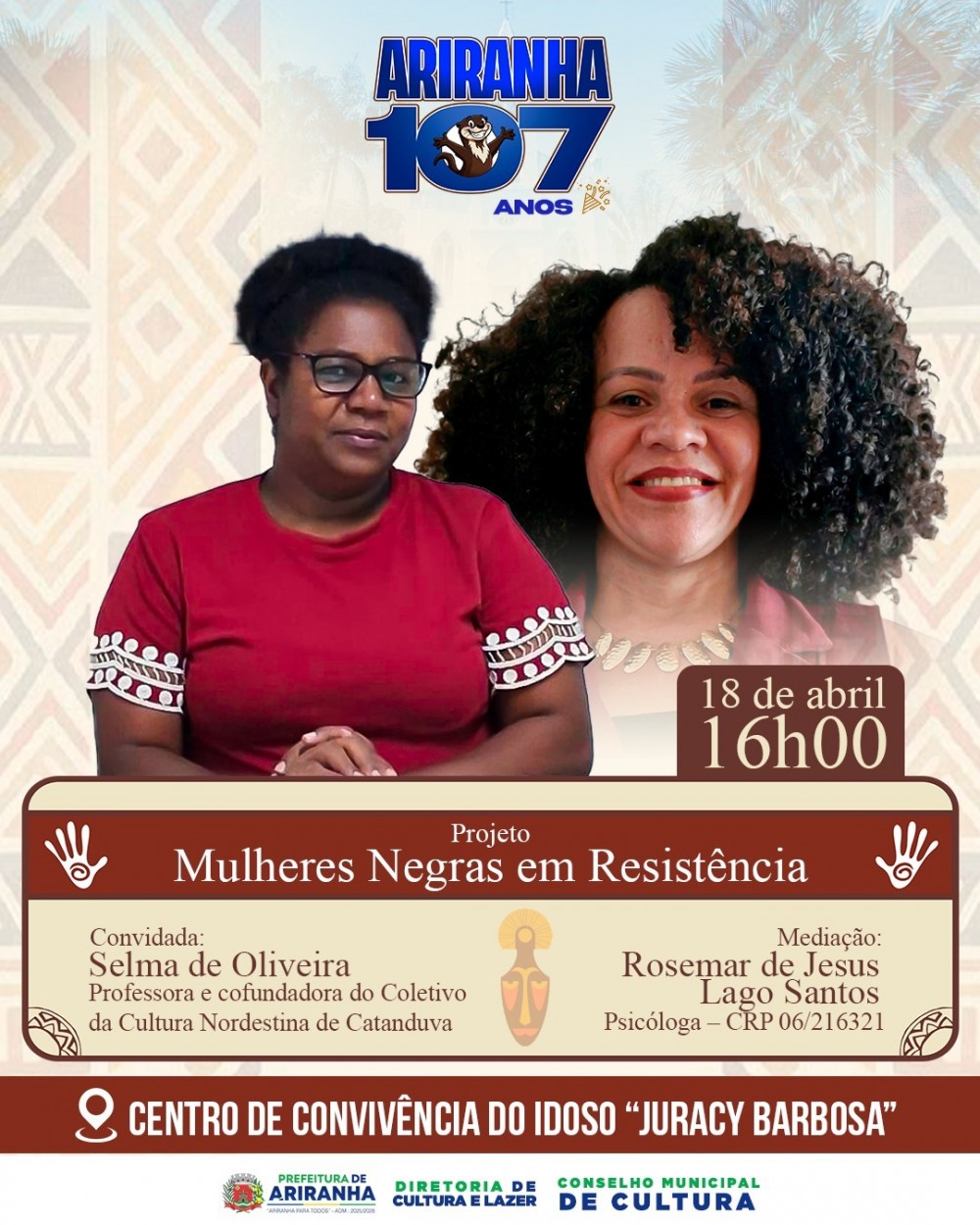 14/04/2026 - Projeto Mulheres Negras em Resistência – Especial Ariranha 107 Anos.