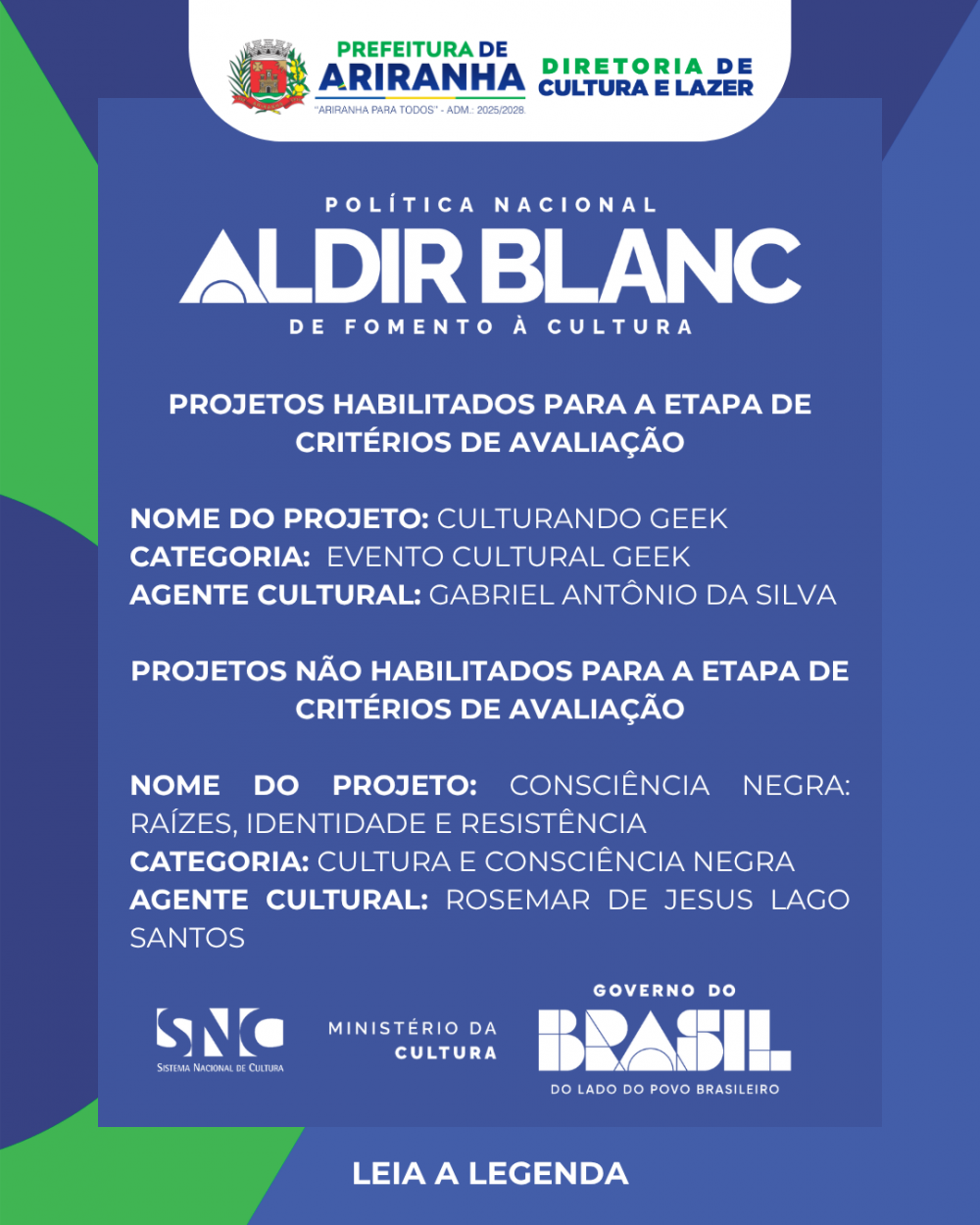 16/04/2026 - Ariranha divulga resultado da etapa de habilitação do Edital PNAB 2026.