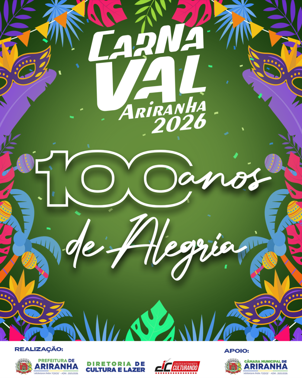 Carnaval Ariranha 2026 – 100 anos de alegria.