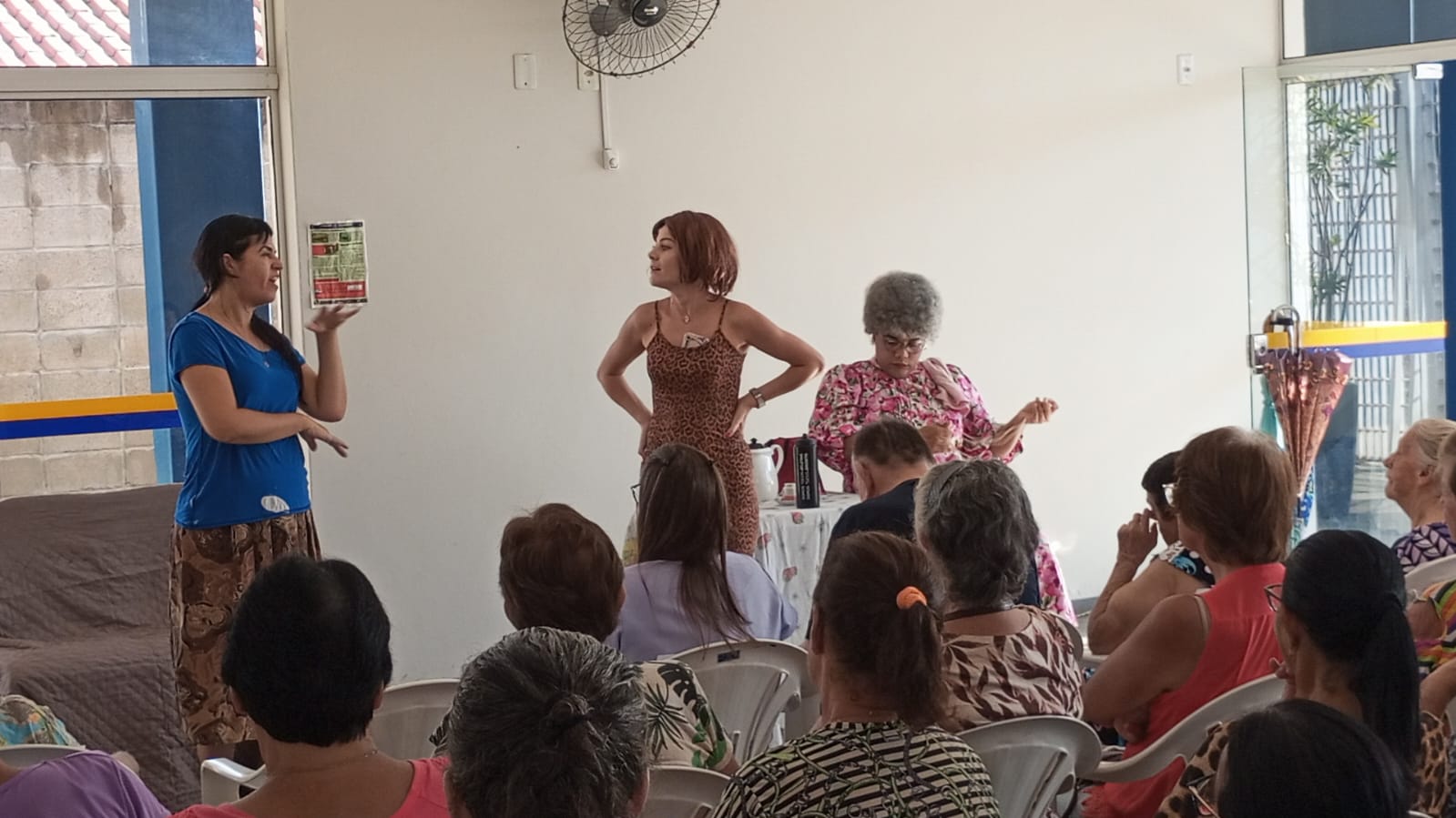 Com uma mistura envolvente de humor, música e emoção, o Grupo Ó do Borogodó cativou a plateia, composta por participantes do serviço de convivência de fortalecimento de vínculos que frequentam os grupos do CRAS, bem como por idosos convidados para conhecer os serviços. Suas performances foram marcantes e cheias de talento. "M de Mulher" trouxe reflexões sobre o universo feminino, abordando temas como amor, trabalho, maternidade e amizade de forma sensível e envolvente. Já "Xô! Dona Dê!!!" arrancou gargalhadas do público com sua comédia inteligente e personagens cativantes, abordando a prevenção contra a Dengue.