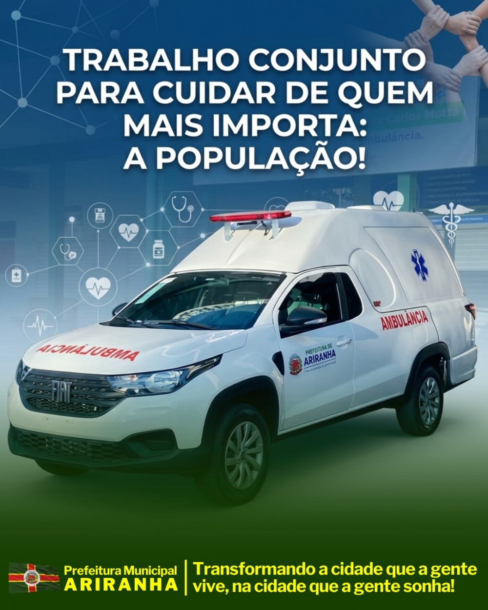 A Prefeitura de Ariranha celebra a entrega de uma nova ambulância zero quilômetro à população, fortalecendo o atendimento na área da saúde e garantindo mais agilidade no transporte de pacientes.